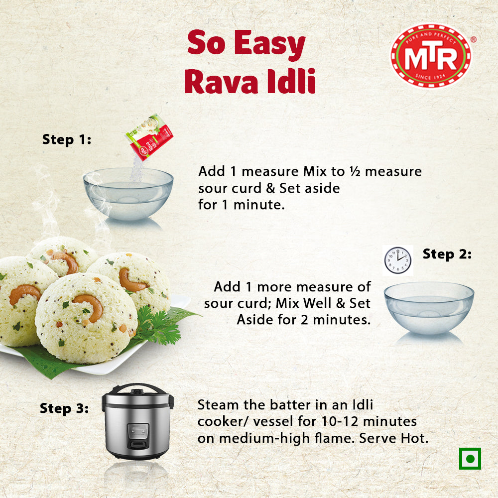Hurry UP! only 57 product Left In StockA signature dish invented by MTR Foods for a healthy & wholesome breakfast. A delicious, traditional breakfast for you and your family is now ready in an instant! Tasty Tip: Serve hot with MTR sambar, coconut chutney and potato curry. Garnish with tomato slices and cashew nuts.
